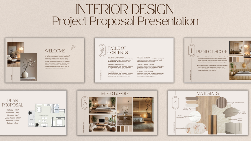 Interior Design Project Proposal Template – Canva Editable Moodboard & Materials Board